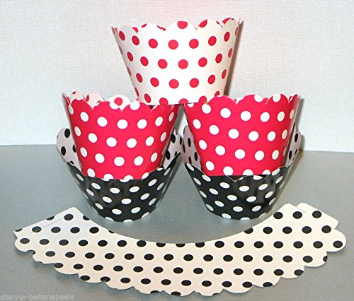 12 REVERSIBLE Red Black White Cupcake Wrappers Polka Dot Wrap Liner through an online shopping site.