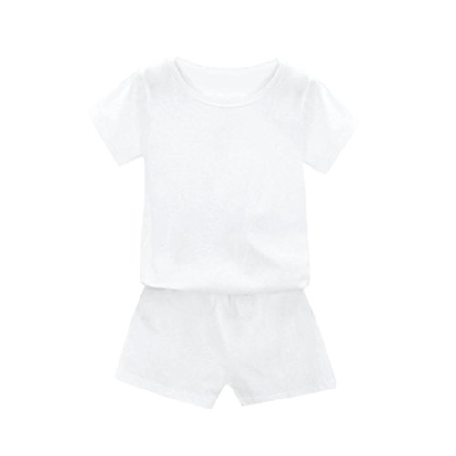 Clearance! â¤ï¸ Child Sets, Neartime 2018 Toddler Unisex Kids Baby Summer Solid Color Tops Shorts Sets Outfits T-Shirt+Pants (6T, White) through an online shopping site.