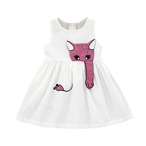 Girl Dress, Neartime 2018 Newborn Baby Girls Cartoon Muse Dress Sleeveless Beach Sundress Knee-Length Cotton Skirts (18M, White) through an online shopping site.